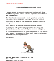 Ce concours a rassemblé des enfants et adolescents de 3 à 18 ans issus de 11 associations FLAM à travers le monde (Europe, États-Unis, Royaume-Uni), autour d’un défi créatif et linguistique sur le thème : « Dis-moi dix mots d’un monde à venir». En ce qui concerne la participation de cette année, celle en forte hausse des Etats-Unis est à remarquer.