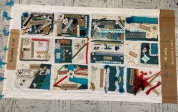 Descriptif: Le projet repose sur l’exploration de diverses techniques de couture et s’inspire d’œuvres du monde artistique et plastique ou de références culturelles, à l’instar des œuvres du plasticien brésilien Arthur Bispo do Rosário, en mobilisant des pratiques proches du patchwork et de l’art brut. Cette démarche artistique s’accompagne d’un processus de réflexion particulièrement intéressant, retracé dans un carnet de bord. Chaque mot choisi par les élèves est inspiré d’une œuvre culturelle, et le travail prend la forme d’un dialogue avec des figures artistiques auxquelles les élèves adressent des lettres, créant ainsi un lien personnel et créatif avec ces références.