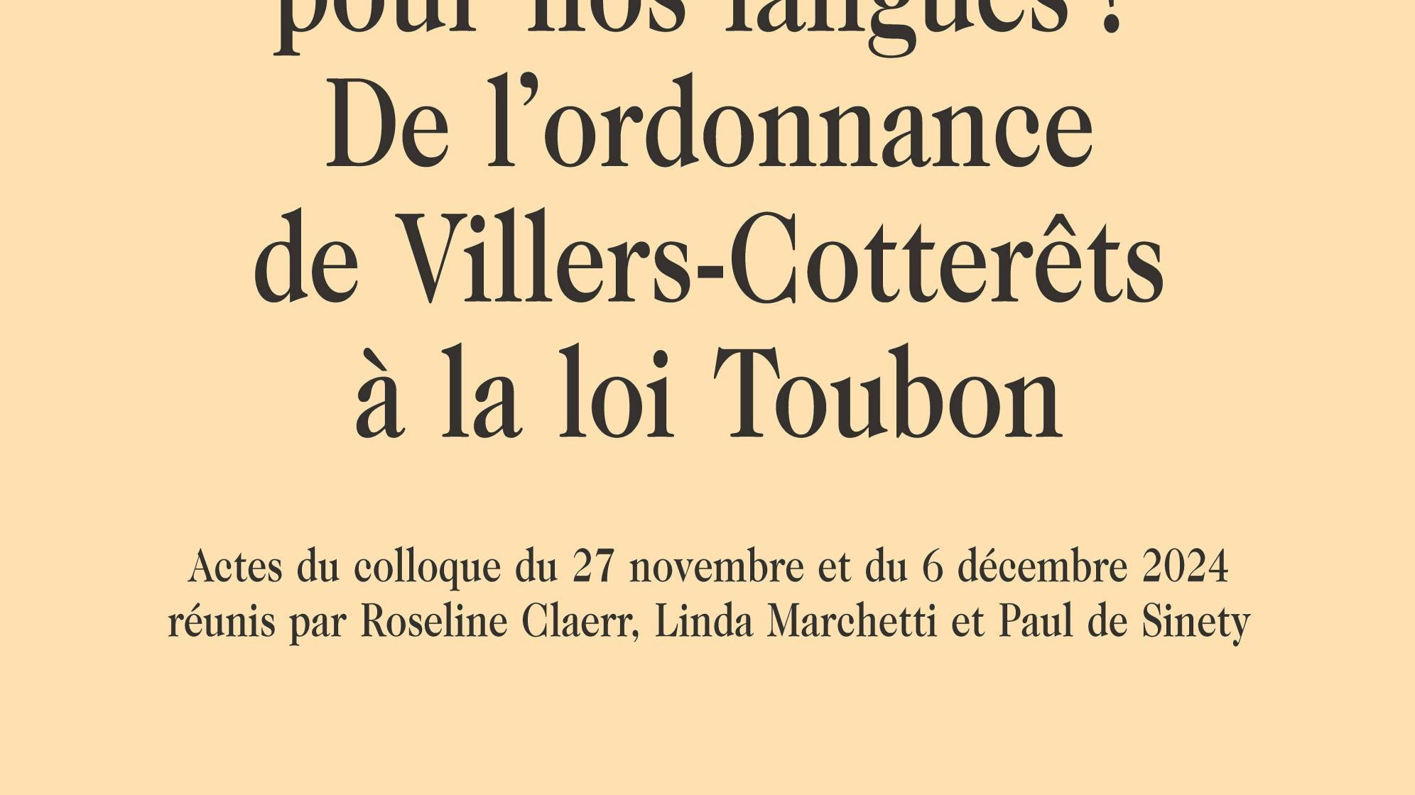 À l’occasion de la célébration des 30 ans de la loi du 4 août 1994 relative à l’emploi de la langue française, dite « loi Toubon », le ministère de la Culture a organisé deux journées de colloque, les 27 novembre et 6 décembre 2024, qui se sont déroulées à la Cité internationale de la langue française au château de Villers-Cotterêts et à l’Institut de France. Associant de nombreux acteurs et institutions, ces deux temps forts illustrent les politiques en faveur de notre langue, essentielles à la cohésion de notre société, et explorent les perspectives pour garantir leur pertinence et leur actualité. Les actes viennent de paraître chez Honoré Champion.