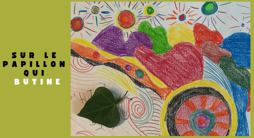 Descriptif : Cette œuvre est une vidéo d'un livre animé. Chaque mot est illustré par un visuel artistique qui représente le mot. Les mots sont animés, le mot « empreinte » possède une lumière rouge et les abeilles sont mis en mouvement, le mot « butiner » est illustré par des abeilles et des palmiers renvoient à la « palmeraie ». Des poèmes écrits par un élève de la classe accompagnent certains mots.